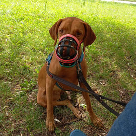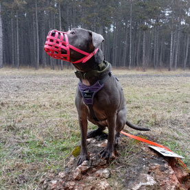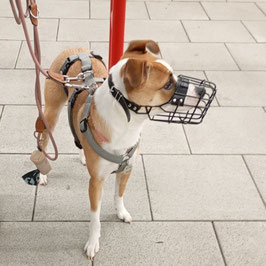 Bärbel ist ein Rottweiler und somit leider in Wien ein Listenhund. Schnell hat sie gelernt mit dem Maulkorb umzugehen und trägt ihn problemlos.