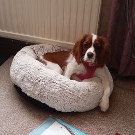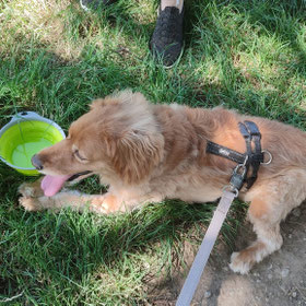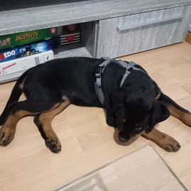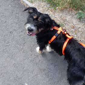 Sie ist mittlerweile ein toller Begleiter an der Leine, kann ruhig an Hunden vorbei gehen, lässt das meiste Essen auf der Straße liegen und kann auch Zuhause schon besser entspannen.