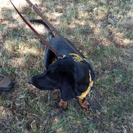 Buddy kenne ich schon etwas länger. Zu Beginn hat er geschrien, wenn er einen anderen Hund auch nur in der Ferne erblickt hat. Er hatte massiven positiven Stress mit fremden Hunden. Durch mehrere freilaufenden in ihn rein rennende Hunde hat sich sein Gefühl gegenüber Fremdhunden etwas ins negative verändert.