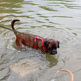 Beau beherrscht schon die meisten Begegnungen und kommt auch Zuhause schon viel besser zur Ruhe. Ruhe hat auch den tollen Effekt, dass er viel gelassener und besonnener reagiert. Nun startet er in die Pubertät, was noch mal ein konsequenteres Training erfordert, um das Gelernte weiter zu fesetigen.