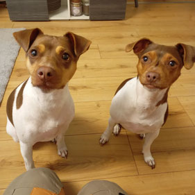 Emma und Funny sind Wirbelwinde und doch im Charakter sehr unterschiedlich. Emma ist sehr aufgeschlossen und freudig erregt. Funny ist unsicherer und verfällt dann schnell in Kläffen.
